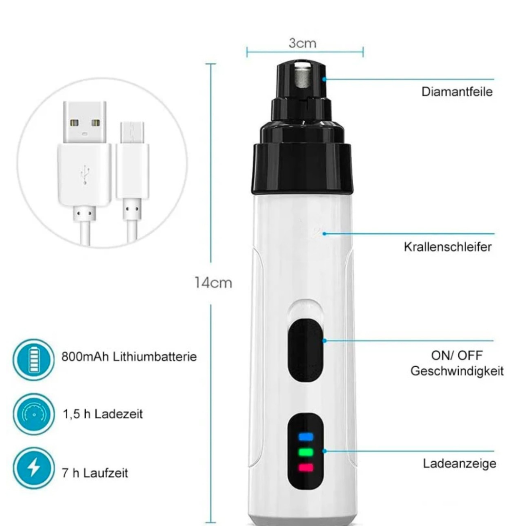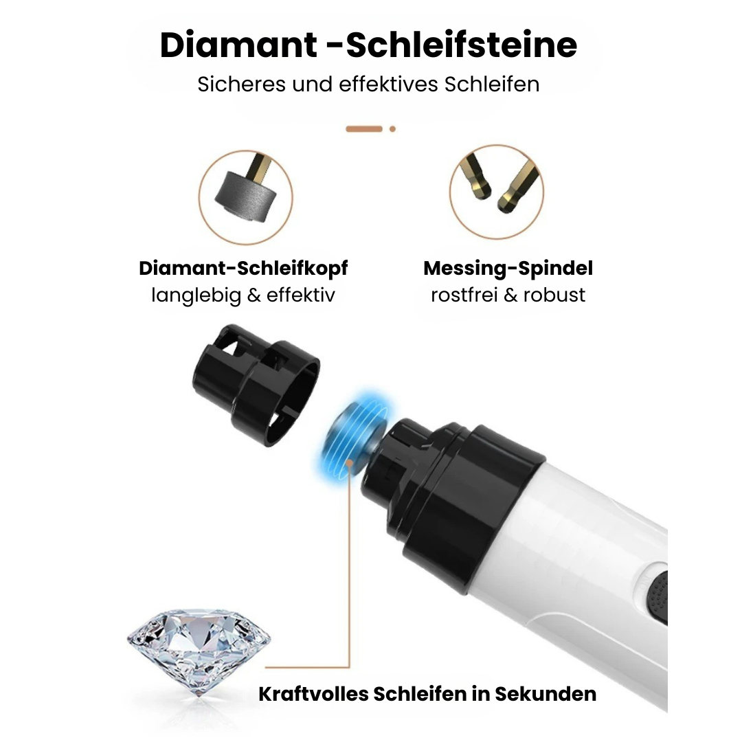 - Mehrere Geschwindigkeiten für unterschiedliche Krallendicken.